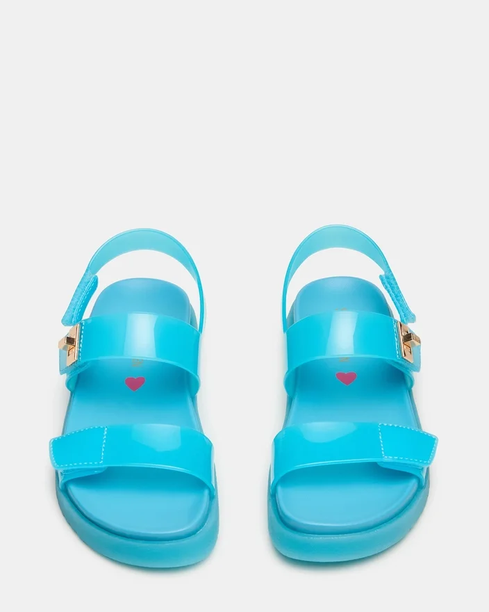 Ispirato ai sandali da papà, il modello Mona Jelly Blue per bambini offre stile e comfort al tuo piccolo. Il cinturino alla caviglia e i cinturini superiori garantiscono una calzata sicura, mentre il design con plateau aggiunge un tocco di tendenza. Il comfort assicura una vestibilità per tutto il giorno. Perfetto per ogni piccolo fashionista.