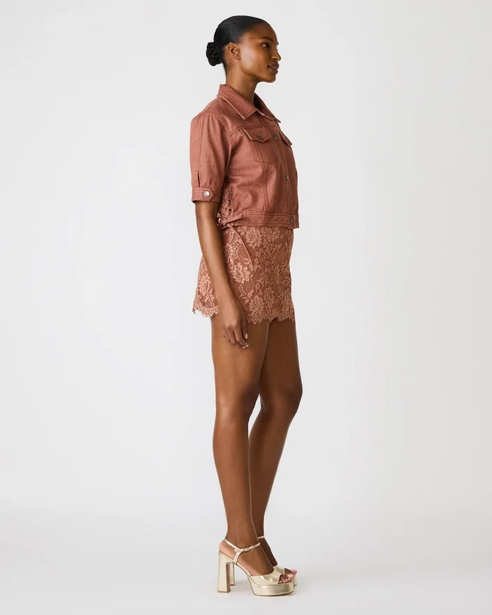 La giacca Blu Rust è una giacca in denim con bottoni, realizzata con un classico collo a colletto e maniche corte, perfetta per essere indossata a strati nella stagione calda. La silhouette strutturata e il intramontabile tessuto denim la rendono un capo essenziale per creare outfit raffinati e senza sforzo. Perfetta per le mezze stagioni o come strato leggero sopra le tue magliette e canotte preferite.