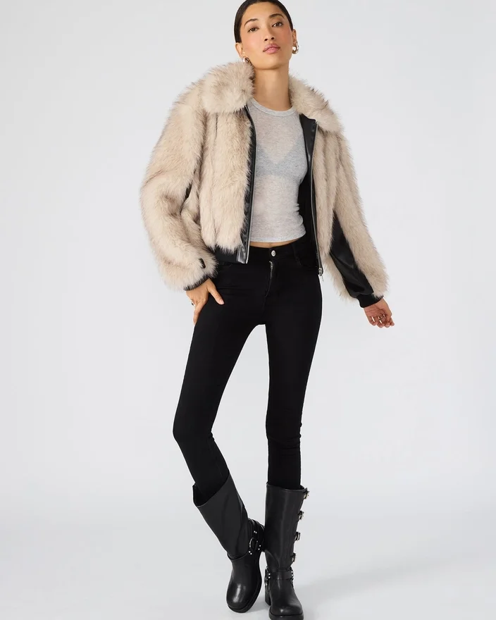 Arricchisci la tua collezione di capispalla con la giacca Charmaine, caratterizzata da una lussuosa struttura in pelliccia sintetica che garantisce calore e stile. Questa giacca a maniche lunghe è progettata con un classico collo a colletto e rifinita con sofisticati dettagli in ecopelle, che aggiungono un tocco raffinato alla sua morbida trama. Perfetta per le giornate più fresche, combina perfettamente comfort ed eleganza, rendendola una scelta versatile sia per le occasioni Casual che per quelle più eleganti.