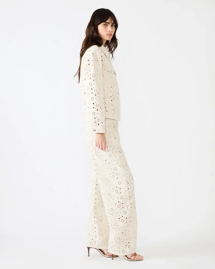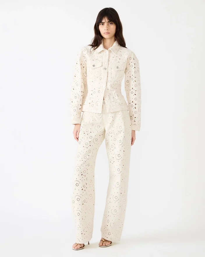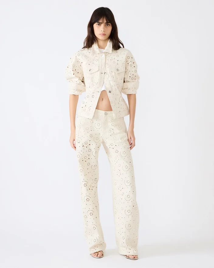 La giacca Henrietta Sea Mist combina la lavorazione artigianale intramontabile del denim con dettagli di design contemporaneo. Questo modello a maniche lunghe con abbottonatura presenta un raffinato motivo a occhielli su tutta la superficie, che aggiunge interesse visivo e texture alla silhouette classica. La giacca offre una tonalità morbida e versatile che si abbina facilmente al tuo guardaroba quotidiano. Realizzata in denim di qualità, questa giacca offre resistenza e struttura mantenendo una vestibilità comoda. Perfetta per essere indossata in tutte le stagioni, la giacca Henrietta passa senza soluzione di continuità da look Casual a look eleganti, rendendola un capo essenziale per qualsiasi guardaroba attento allo stile.