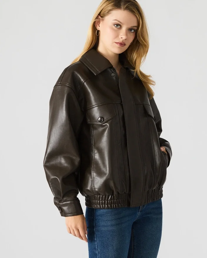 La giacca Henson Coco è realizzata in elegante ecopelle, con un design a maniche lunghe che unisce stile e praticità. La sua robusta chiusura con cerniera garantisce una vestibilità sicura, mentre il classico collo con colletto offre una silhouette strutturata e raffinata. Questa giacca offre un’opzione versatile per vestirsi a strati che esalta qualsiasi outfit con un tocco esperto di modernità. Poliuretano