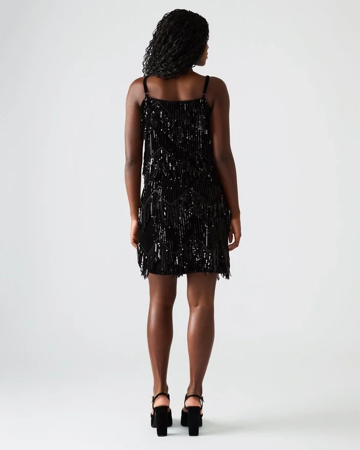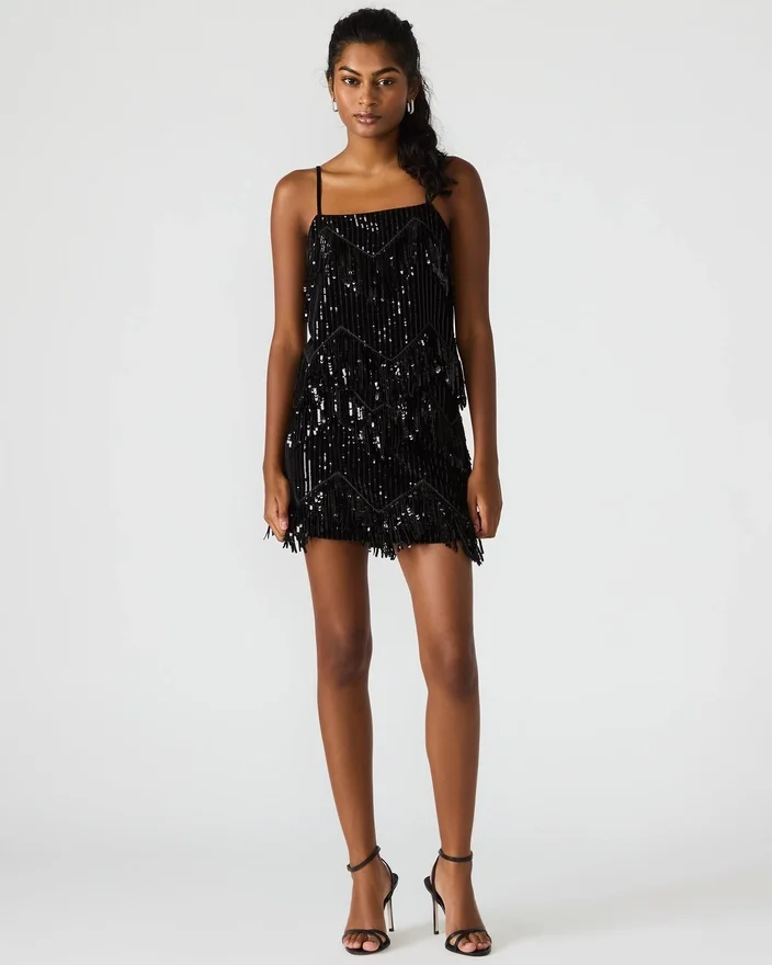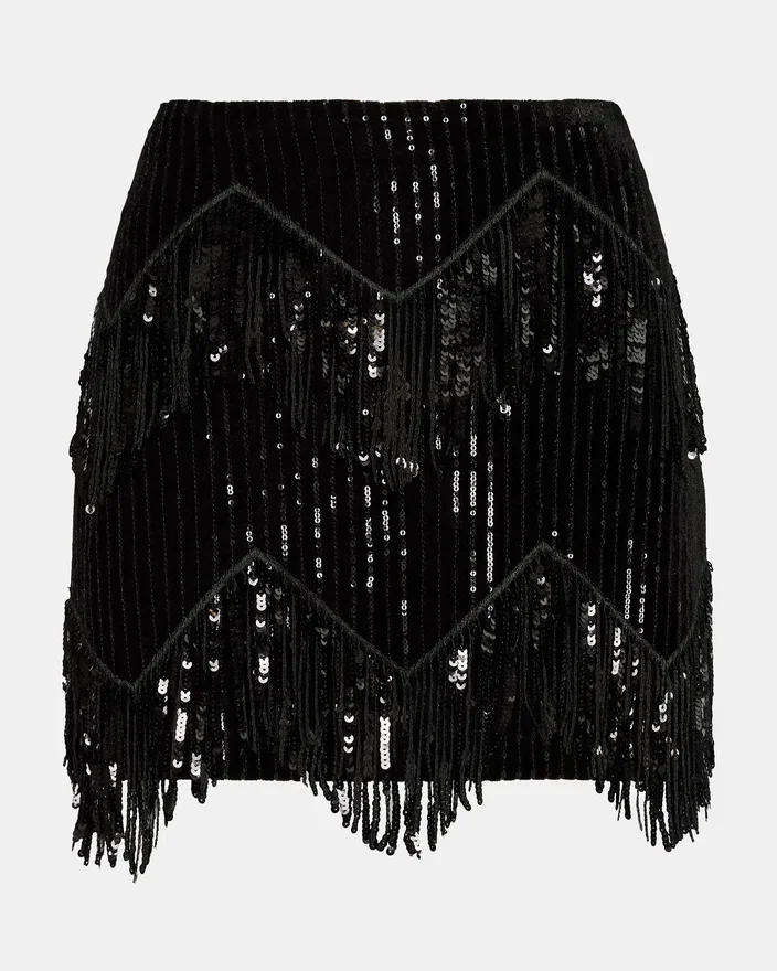 Dai un tocco di classe al tuo look da sera con la gonna con paillettes Cindi nera. Questa gonna presenta decorazioni scintillanti in paillettes disposte con dettagli a frange dinamici, che aggiungono movimento e un tocco audace al tuo look. Progettata come parte di un set coordinato, offre un completo alla moda perfetto per occasioni speciali o serate fuori. La finitura lussuosa della gonna e le frange fluide creano un tocco accattivante, pur mantenendo una vestibilità disinvolta.