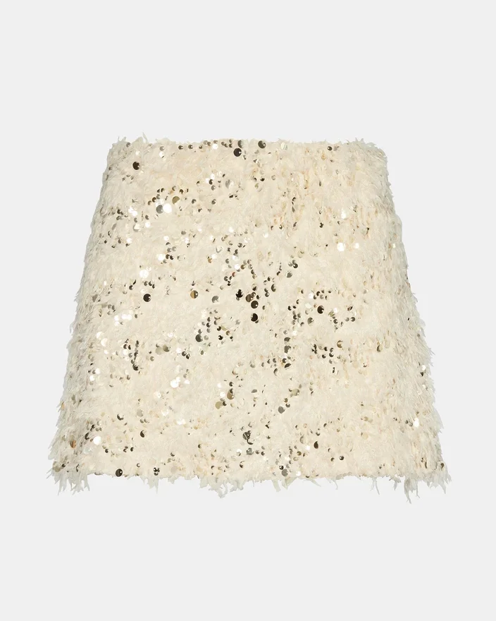 Dai un tocco di classe al tuo look da sera con la gonna Cindi Feather Skirt Ivory. Questa gonna presenta decorazioni scintillanti in paillettes disposte insieme a dettagli dinamici in piume, che aggiungono movimento e un tocco audace al tuo look. Progettata come parte di un completo coordinato, offre un ensemble alla moda perfetto per le occasioni speciali o le serate fuori. La finitura lussuosa e la fluidità della gonna creano un fascino accattivante, pur mantenendo una vestibilità disinvolta.