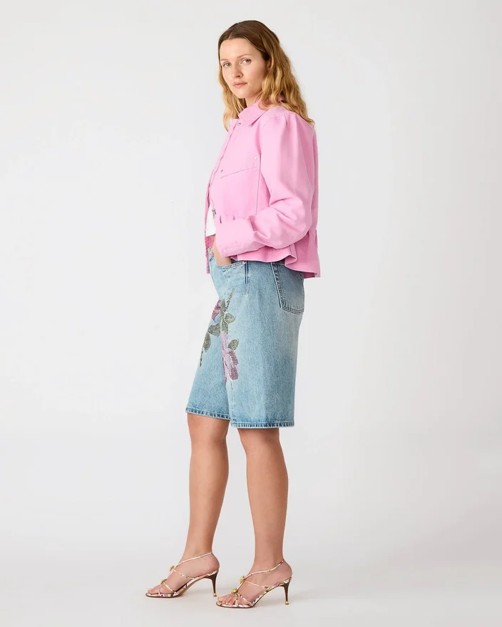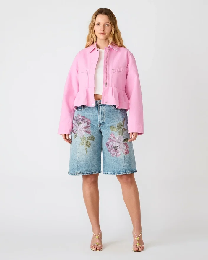 Metti in risalto il tuo look in denim con i pantaloncini Kesha blu Seabreeze. Questo paio di pantaloncini di grande effetto presenta intricati dettagli in strass e decorazioni floreali che trasformano il classico denim in un capo di tendenza. Le pratiche tasche anteriori e posteriori tengono al sicuro i tuoi oggetti essenziali mentre sfoggi il design accattivante.