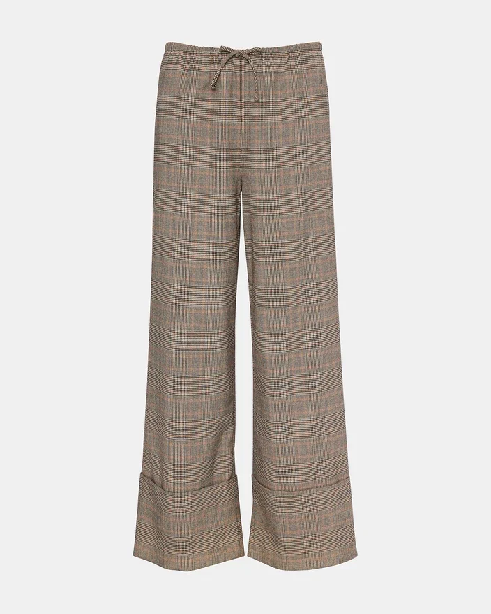 Questi pantaloni a quadri Idra senza chiusura presentano una sofisticata chiusura con lacci sul davanti per una vestibilità regolabile e un risvolto sartoriale sul fondo, combinando comfort e stile raffinato. Ideali per un look versatile, offrono facilità di movimento mantenendo una silhouette elegante.