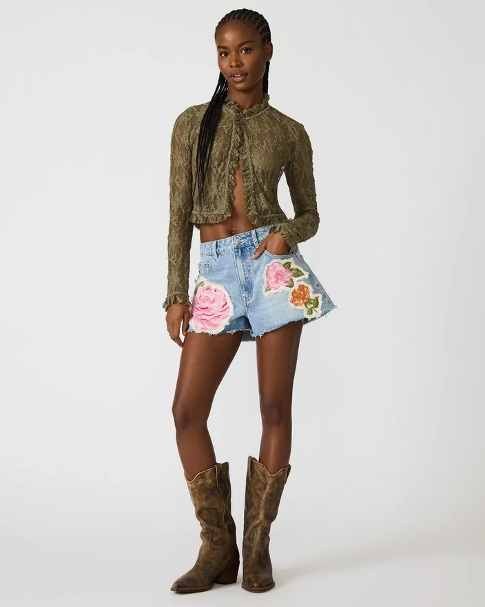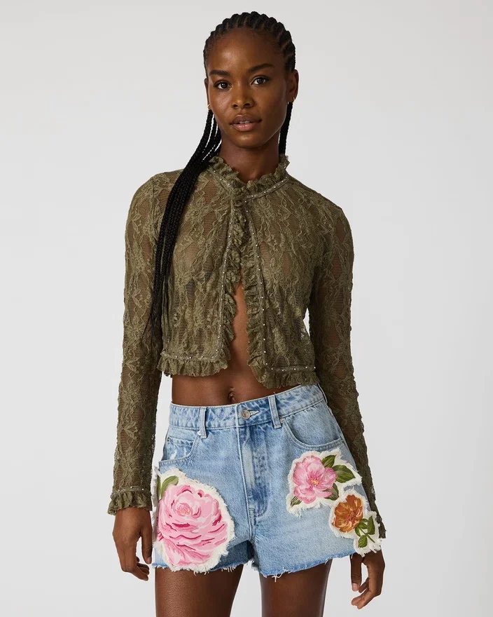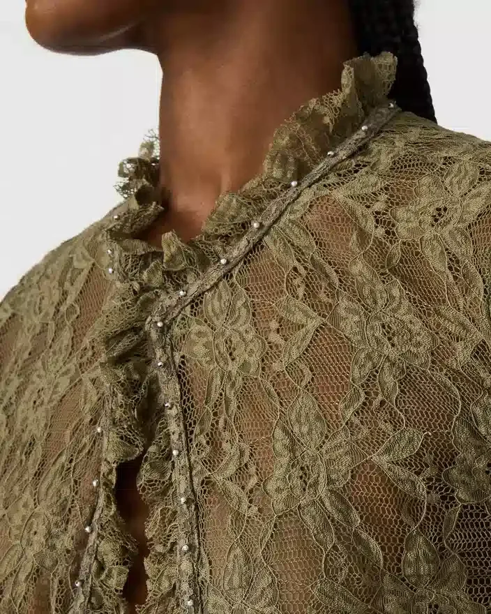 Il top Linden verde montagna unisce un’eleganza naturale a dettagli audaci. La struttura in pizzo trasparente offre un’estetica delicata e romantica, mentre la chiusura frontale garantisce una facile versatilità di styling. I dettagli con borchie aggiungono un tocco inaspettato, rendendo questo capo perfetto da indossare da solo o in sovrapposizione. Perfetto per una serata fuori o per un look Casual con i tuoi jeans preferiti.