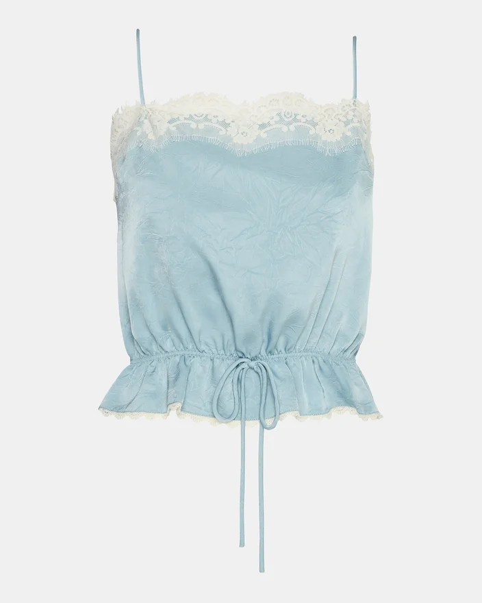 Il top Roan blu polveroso combina un’eleganza sobria con dettagli di design accurati. Questa silhouette senza maniche presenta un delicato bordo in pizzo che aggiunge un tocco raffinato, mentre il design stretto crea una forma lusinghiera e definita in vita.