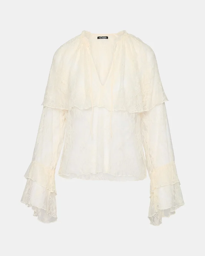 Il top Saylor presenta un raffinato design in pizzo con maniche lunghe, che offre un mix di eleganza e raffinatezza. Realizzato per garantire una texture delicata e una sottile trasparenza, questo top è ideale da indossare da solo o in sovrapposizione per un look raffinato e di classe. Il suo stile intramontabile e la lavorazione curata lo rendono un capo versatile da aggiungere a qualsiasi guardaroba, perfetto sia per contesti professionali che per eleganti occasioni serali.