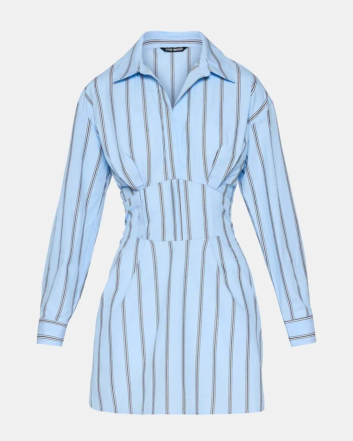 L’abito Ariany Estate Blue combina una raffinatezza senza tempo con la praticità di tutti i giorni. Questo modello a maniche lunghe presenta una scollatura con colletto che valorizza ogni occasione, mentre la vita stretta crea una silhouette lusinghiera che definisce la tua figura. Le tasche frontali funzionali aggiungono praticità senza compromettere lo stile, rendendo questo capo adatto sia per l’ufficio che per le uscite nel fine settimana. I vestiti offrono una versatilità che si abbina senza sforzo al tuo guardaroba esistente, regalando un look raffinato che va oltre le stagioni.