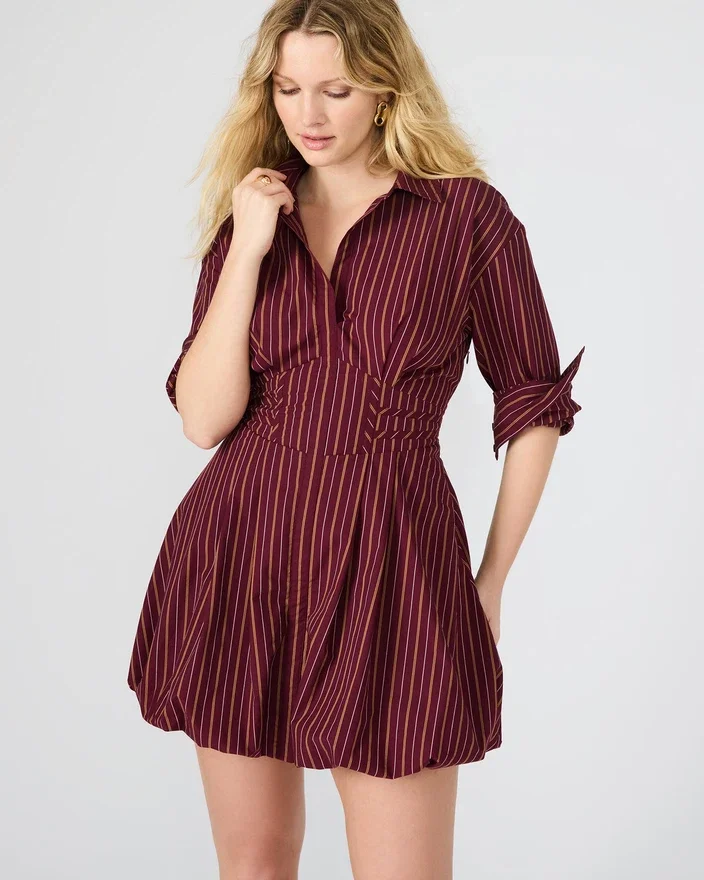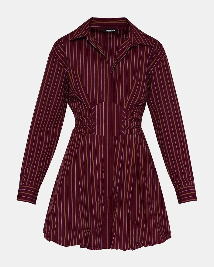 L’abito Arielle offre una versione raffinata del classico abito abbottonato a maniche lunghe. La sua vestibilità sartoriale e la ricca tonalità bordeaux creano una silhouette sofisticata, ideale per contesti professionali o occasioni eleganti.
