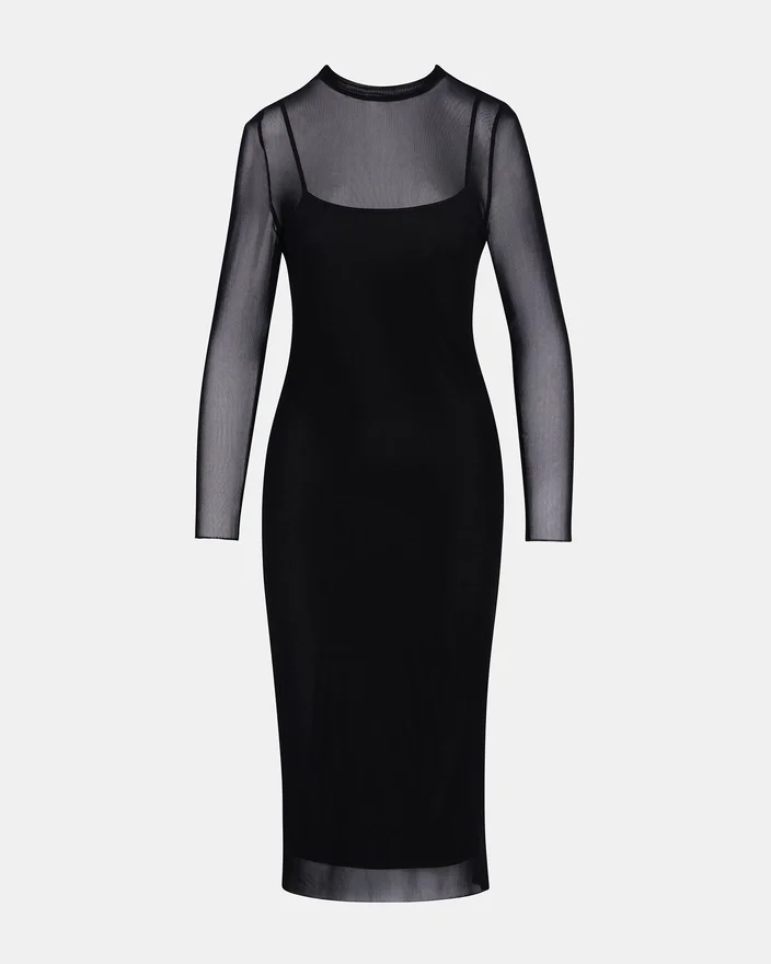L’abito Hailee è un sofisticato capo di lunghezza media realizzato in tessuto a rete trasparente, caratterizzato da maniche lunghe e un raffinato collo alto. Il suo design bilancia l’eleganza con un tocco moderno, rendendolo ideale per eventi serali alla moda o incontri di alto livello. La rete traspirante assicura comfort mantenendo una silhouette slanciata, offrendo un look sicuro e raffinato.