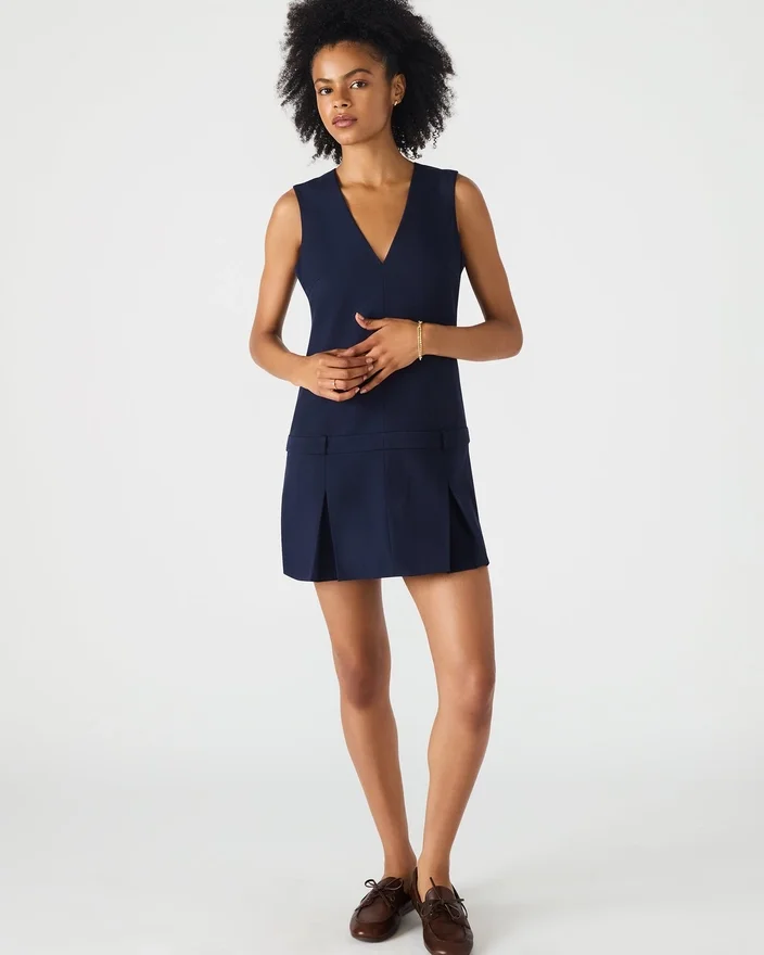 L’abito Henley presenta una scollatura a V che valorizza la figura e una gonna a pieghe giocosa che aggiunge movimento e stile. Progettato come un miniabito, include passanti per cintura per una vestibilità personalizzabile e una chiusura con cerniera posteriore per indossarlo facilmente. Questo capo combina dettagli classici con una sartoria moderna, perfetto per look versatili e raffinati.