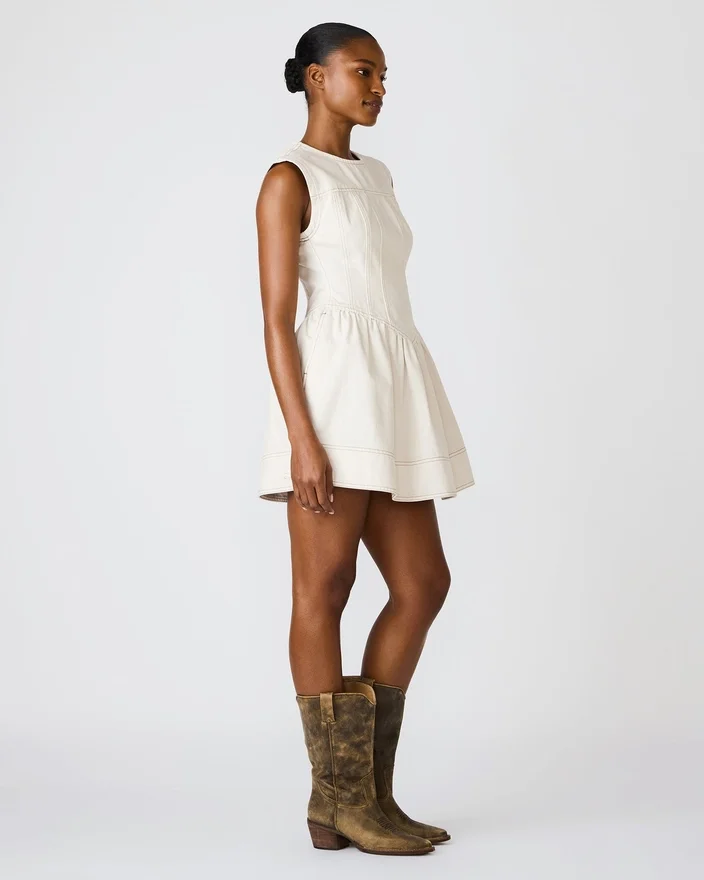 Il vestito Irinna Sand presenta una sartoria raffinata con meticolosi dettagli cuciti su tutta la superficie, creando una silhouette elegante. La scollatura alta offre una copertura sofisticata, mentre la pratica cerniera posteriore garantisce una chiusura elegante e una vestibilità comoda. Questo miniabito combina un design contemporaneo con una maestria artigianale, rendendolo un capo essenziale per uno stile quotidiano raffinato o per occasioni speciali.