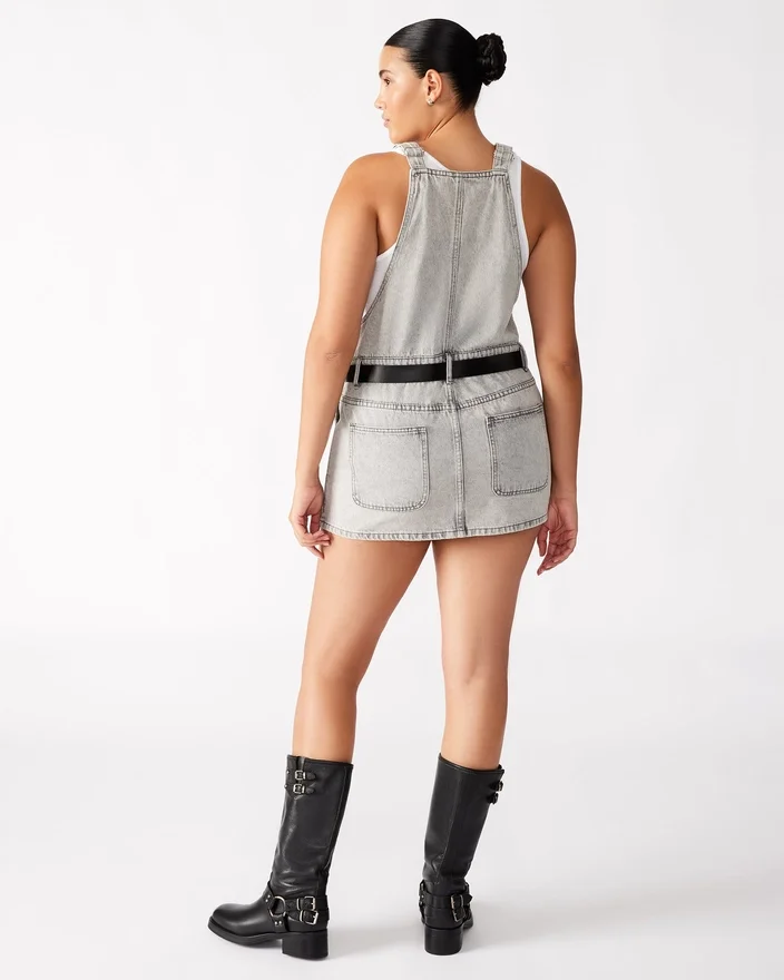 Vi presentiamo l’abito Tamia, un capo versatile per il vostro guardaroba. Realizzato in denim lavato, questo miniabito in stile salopette presenta una comoda tasca applicata sul corpetto e una cintura separata per una vestibilità personalizzabile. Indossatelo in modo elegante o casual per ogni occasione.
