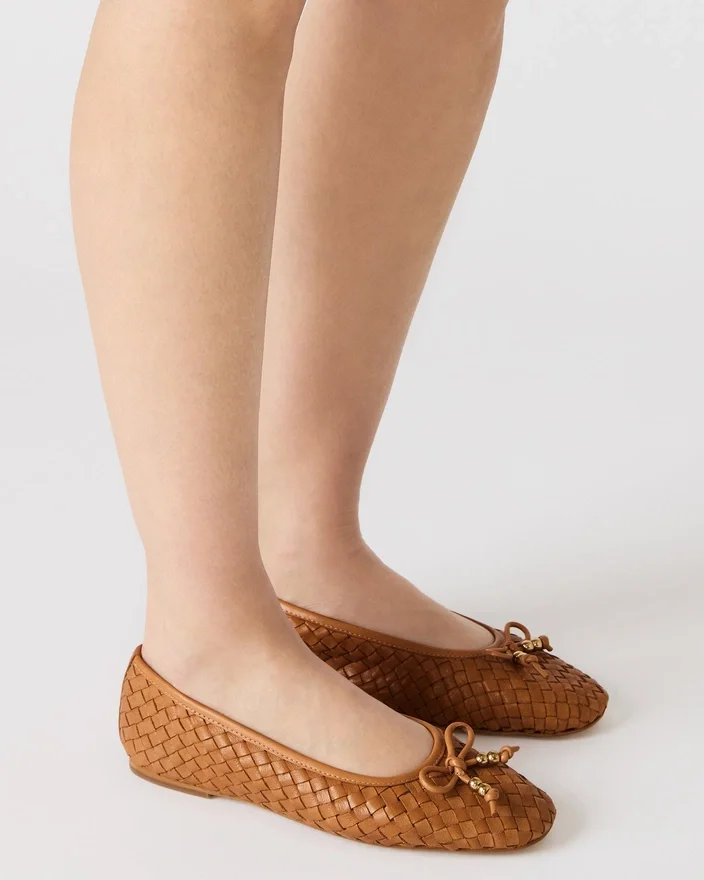 Le ballerine Divy in pelle cognac mettono in mostra una raffinata maestria artigianale grazie alla loro struttura intrecciata e al grazioso fiocco decorativo. Questo modello a punta arrotondata bilancia l’estetica minimalista con l’eleganza funzionale, rendendolo la scelta ideale per chi cerca una scarpa piatta versatile che si adatti senza sforzo a ogni occasione. I dettagli intrecciati aggiungono un tocco di interesse visivo, pur mantenendo la raffinatezza sobria per cui le ballerine sono famose.