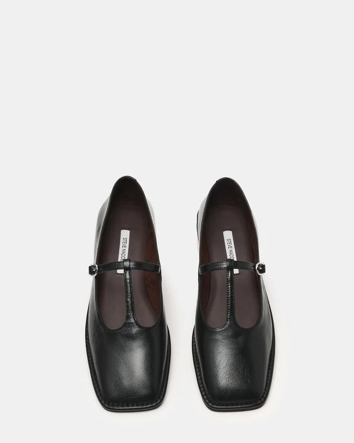 Il modello Macbeth in pelle nera combina un’eleganza senza tempo con un design contemporaneo. Caratterizzato da una silhouette distintiva con punta quadrata e da un raffinato dettaglio con cinturino a T, questo modello offre sia raffinatezza che comfort. La struttura a ballerina offre un profilo slanciato perfetto per passare dal giorno alla sera, mentre la punta strutturata e il cinturino di sostegno assicurano una calzata sicura ed elegante. Un’aggiunta essenziale a qualsiasi guardaroba di buon gusto.