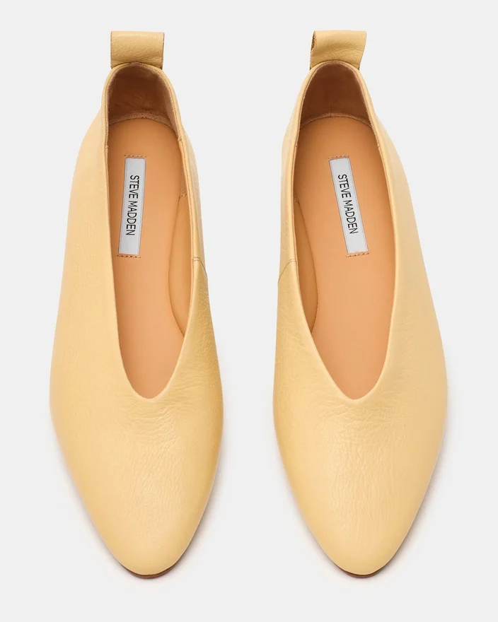 La ballerina con punta a mandorla in pelle Swanky Butter rappresenta un capolavoro di raffinatezza sobria. La sua silhouette crea una linea visiva elegante, mentre la struttura piatta garantisce comfort per tutto il giorno. Questo modello colma il divario tra estetica minimalista e comfort pratico, rendendola la scarpa perfetta per chi apprezza le calzature di qualità. Perfette per creare un guardaroba sofisticato e versatile che va oltre ogni occasione e stagione.