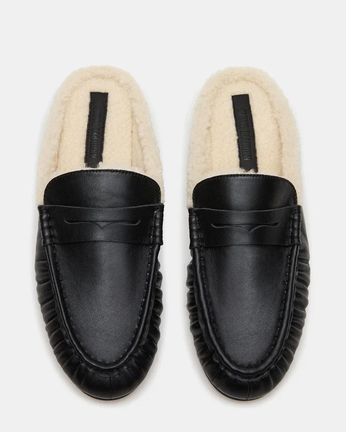 La Rafe in pelliccia sintetica e pelle nera è un’elegante scarpa piatta senza lacci caratterizzata da una punta arrotondata per un maggiore comfort. Realizzata con materiali di alta qualità, questa scarpa offre sia stile che funzionalità per essere indossata tutto il giorno. Arricchisci il tuo guardaroba con questo modello versatile e chic.