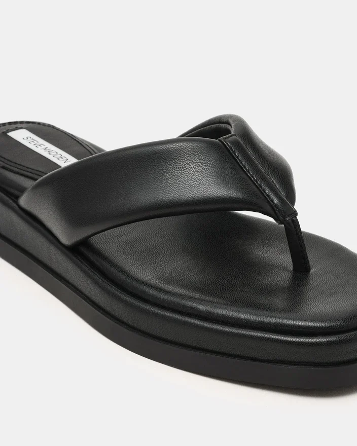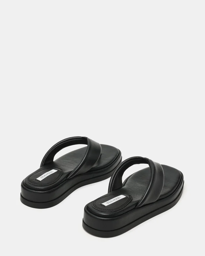 Il sandalo infradito con plateau Bella Black mette in mostra un minimalismo raffinato grazie alla sua silhouette dalla punta squadrata e alla suola con plateau. Questo modello eleva la classica struttura a infradito con proporzioni contemporanee, creando una scarpa che attira l’attenzione senza sacrificare la vestibilità.