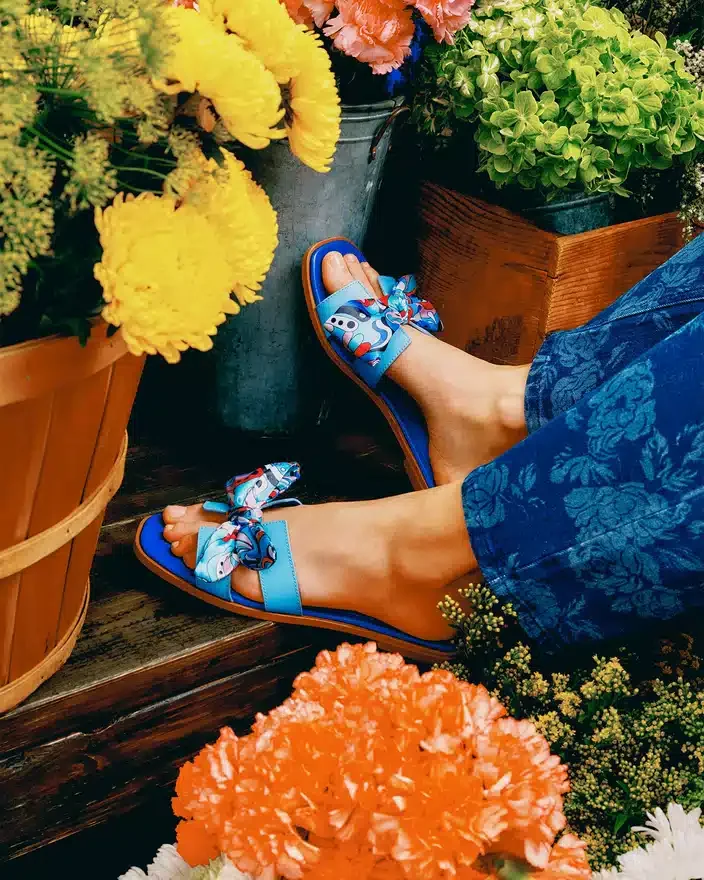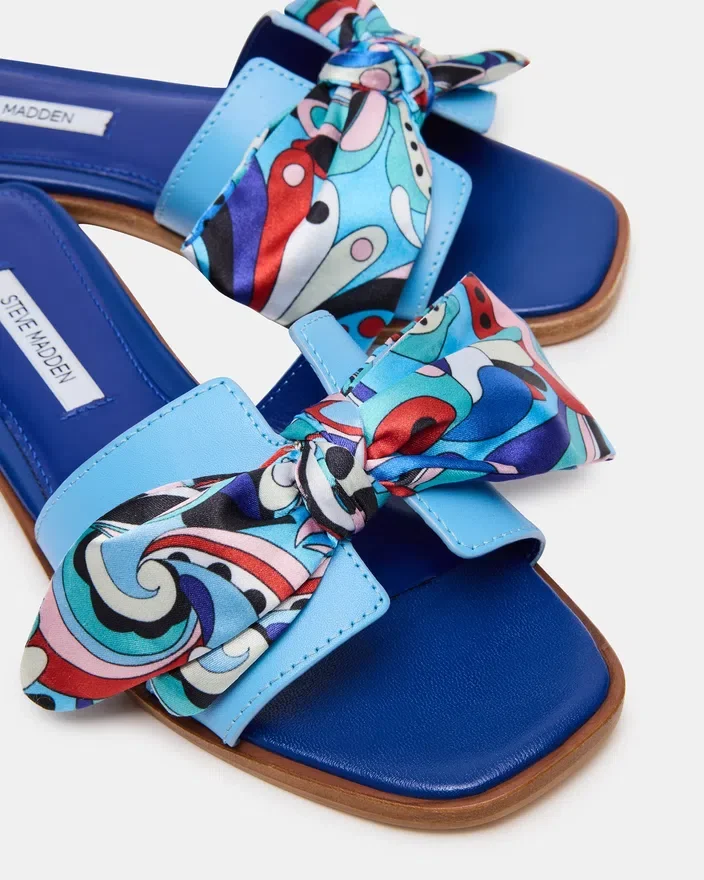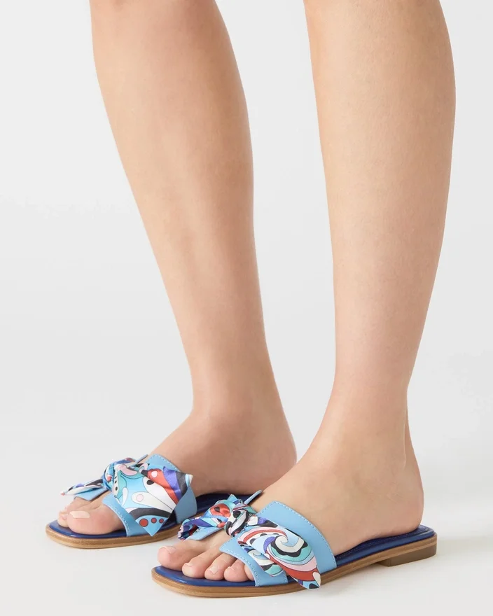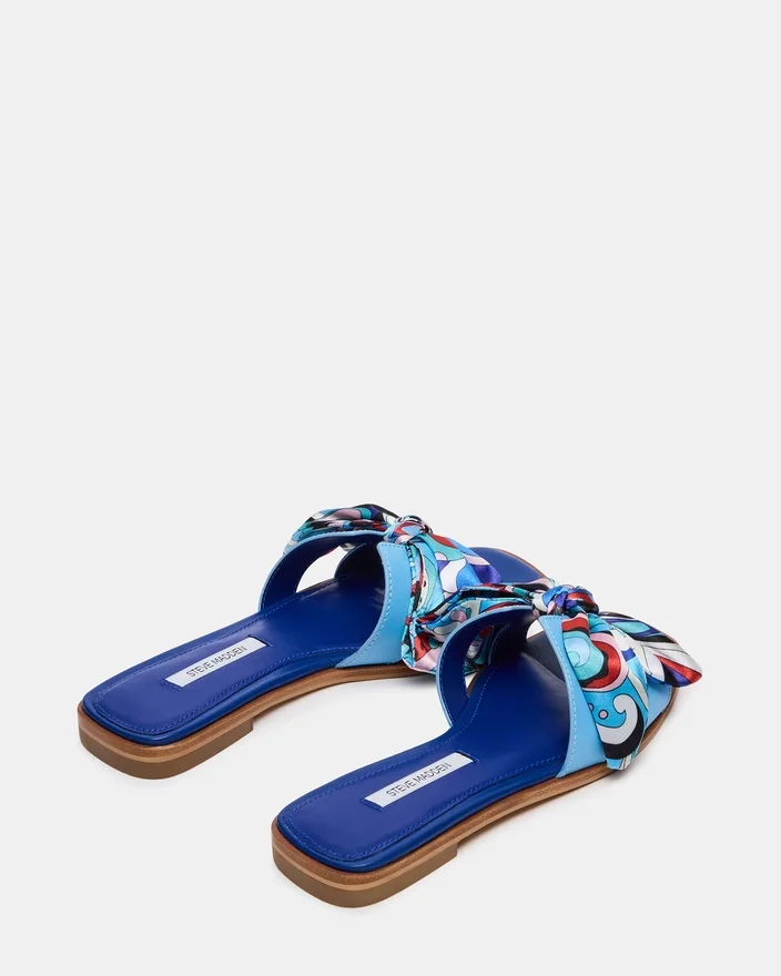 I ritagli geometrici sul cinturino singolo largo delle Hadyn Blue Scarf Slide conferiscono a questo modello di sandalo piatto un tocco di freschezza.