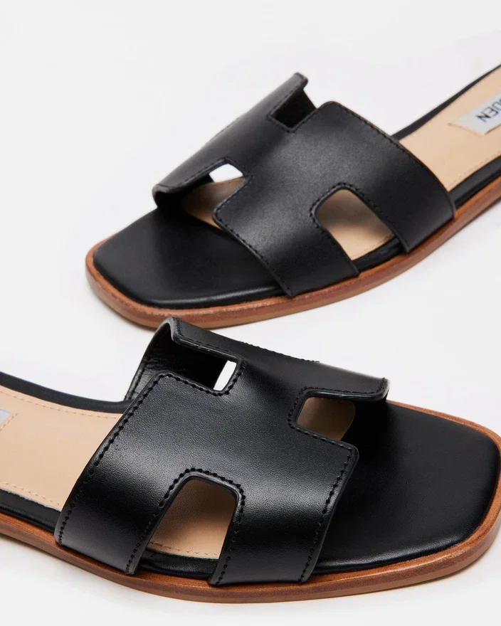 I tagli geometrici sull’ampio cinturino singolo delle Hadyn Slide conferiscono a questo modello di sandalo piatto un tocco di freschezza.