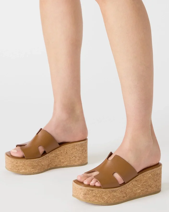 Il sandalo con zeppa in pelle Harmony Cognac presenta una scarpa con plateau in sughero che offre stile e comfort per essere indossato tutto il giorno. Il tacco a zeppa strutturato offre un sostegno stabile senza rinunciare all’eleganza. Una scelta versatile per passare da uscite casual a occasioni più eleganti.