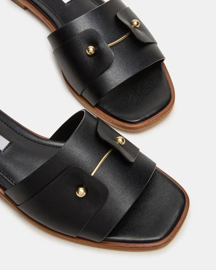 Il sandalo in pelle nera Hasten offre una raffinatezza disinvolta con una silhouette slanciata realizzata con materiali di prima qualità. Delicati dettagli dorati esaltano il design minimalista, aggiungendo un tocco raffinato che si adatta perfettamente sia alle occasioni Casual che a quelle più eleganti.