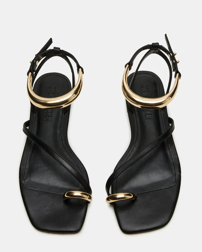 Il sandalo Odyssey offre sia stile che comfort grazie al suo design a cinturini, alla punta squadrata e al cinturino alla caviglia con dettagli dorati. Un elegante anello sulla punta aggiunge un tocco di raffinatezza. Perfetto per una giornata fuori o una serata in città.