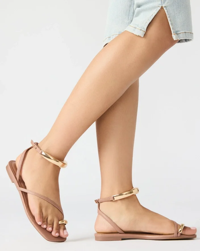 Il sandalo Odyssey offre sia stile che comfort grazie al suo design a cinturini, alla punta squadrata e al cinturino alla caviglia con dettagli dorati. Un elegante anello sulla punta aggiunge un tocco di raffinatezza. Perfetto per una giornata fuori o una serata in città.