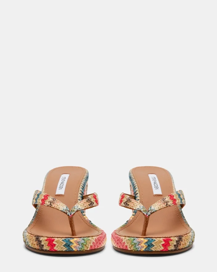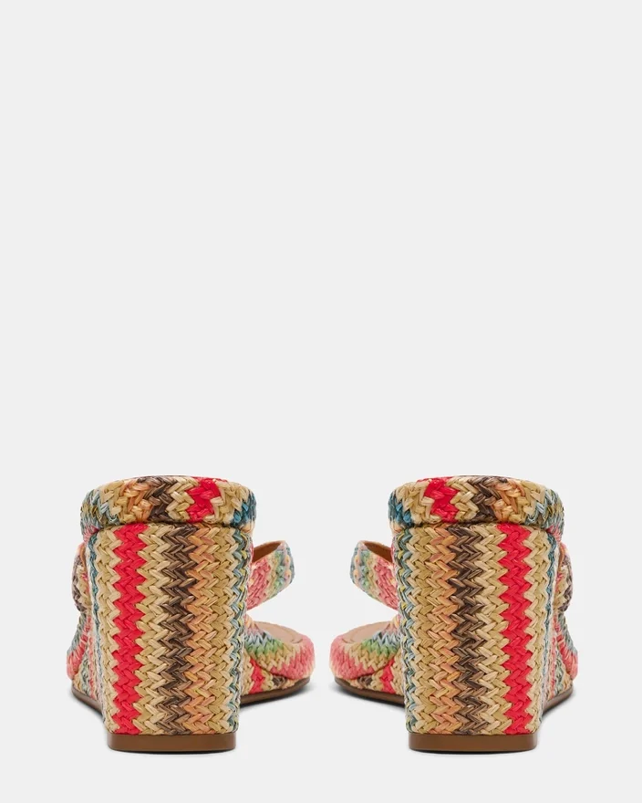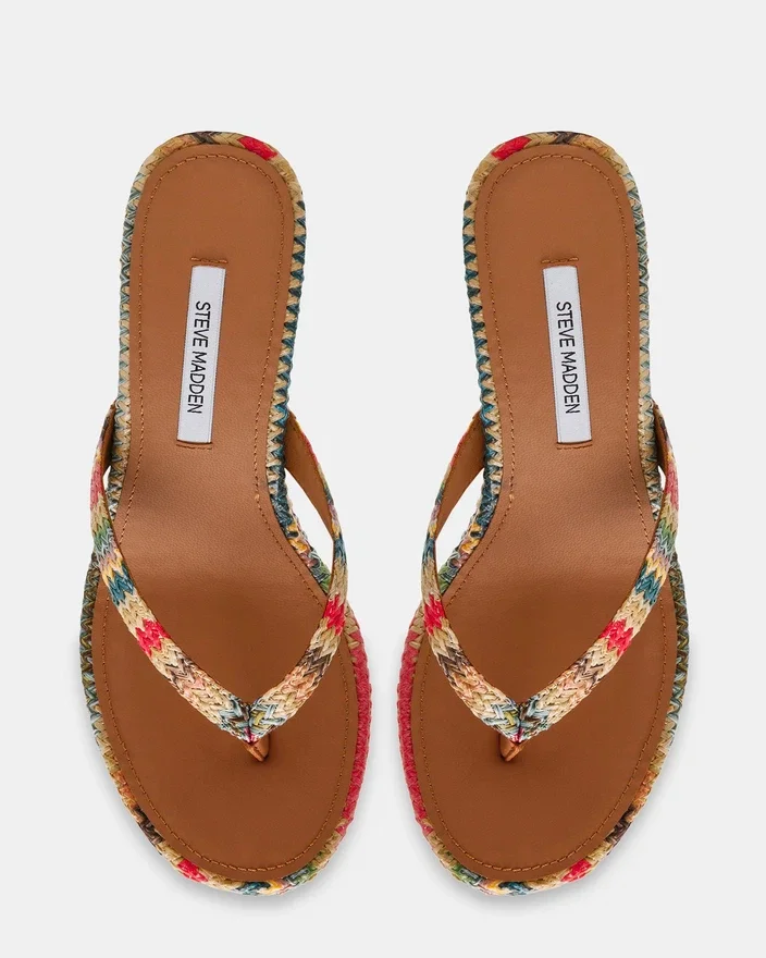 Arricchisci il tuo guardaroba estivo con il sandalo con zeppa Playing Bright Multi. Caratterizzato da un elegante design a infradito e da una comoda punta arrotondata, questo sandalo in stile mule offre sia stile che comodità. Le scarpe con zeppa offrono un leggero rialzo e stabilità, rendendoli perfetti da indossare tutto il giorno. Questi sandali combinano raffinatezza e versatilità per abbinarsi senza sforzo a outfit Casual o eleganti.
