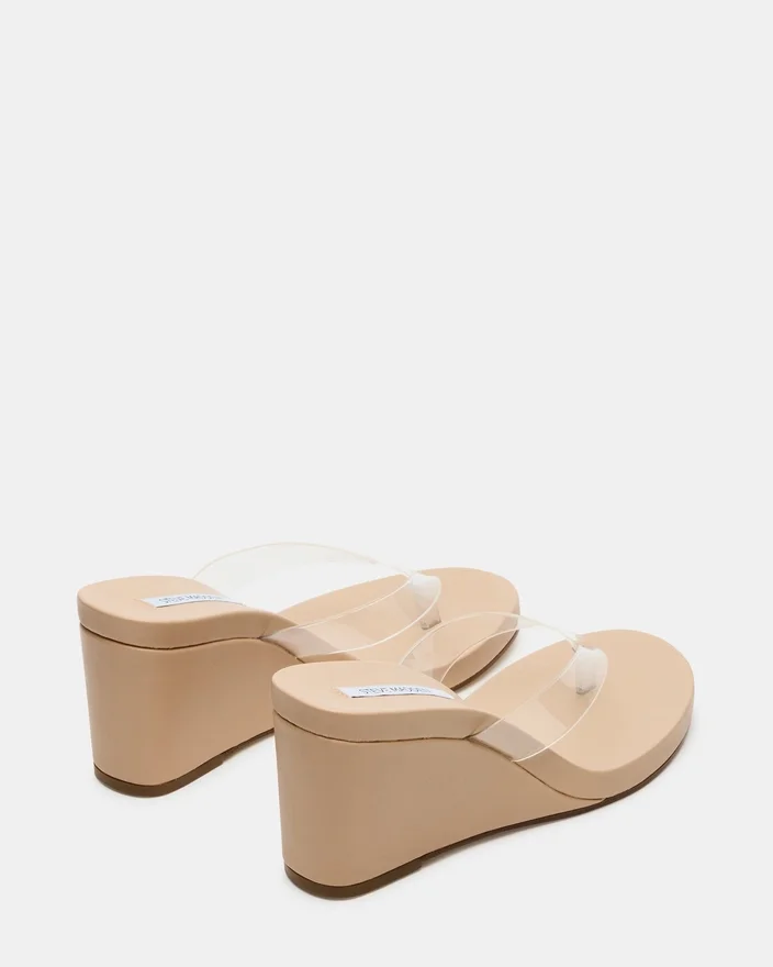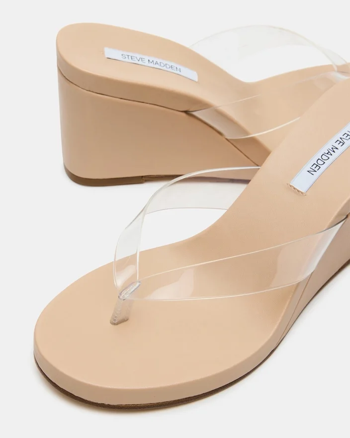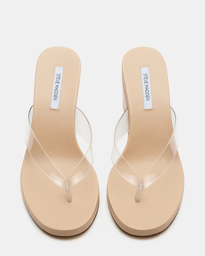 Arricchisci il tuo guardaroba estivo con il sandalo con zeppa Playing Clear. Caratterizzato da un elegante design a infradito e da una comoda punta arrotondata, questo sandalo in stile mule offre sia stile che comodità. La zeppa garantisce un leggero rialzo e stabilità, rendendolo perfetto da indossare tutto il giorno. Questo sandalo combina raffinatezza e versatilità, per abbinarsi facilmente a look Casual o eleganti.