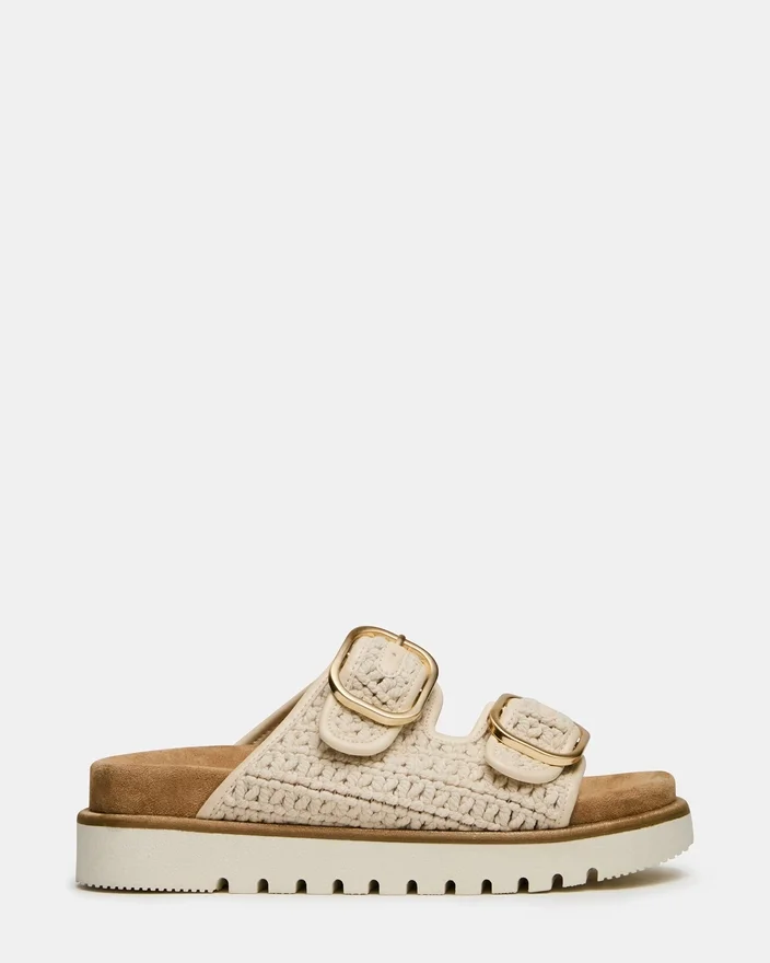 Il modello Shellby Cream è un sandalo intrecciato realizzato con maestria, progettato per offrire comfort e stile senza sforzo. La silhouette a ciabatta presenta chiusure con fibbia sicure che garantiscono una calzata regolabile e stabilità per tutta la giornata. Il plantare sagomato offre sostegno all’arco plantare e ammortizzazione, rendendo questo modello versatile ideale sia per le uscite Casual che per le occasioni rilassate. La struttura intrecciata garantisce una calzata traspirante, perfetta per la stagione calda.