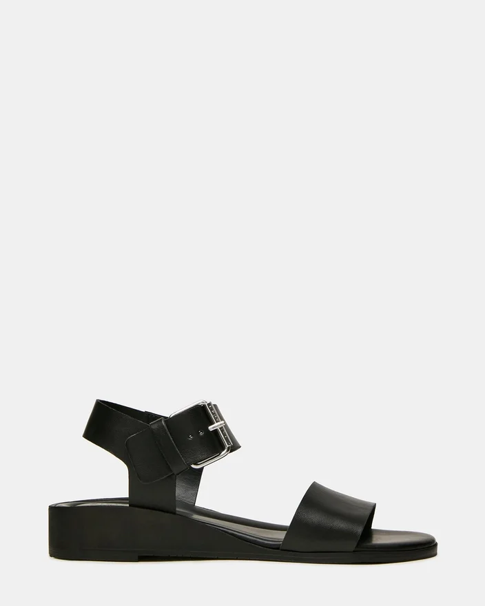 Il sandalo con zeppa in pelle nera Vaeda unisce lo stile alla praticità per tutti i giorni. Il cinturino regolabile con fibbia garantisce una calzata personalizzata, mentre la scarpa con zeppa offre un sostegno affidabile e un leggero rialzo. Che tu stia andando a un brunch o a fare commissioni, questo sandalo si adatta al tuo stile di vita con una raffinatezza sobria e un comfort che dura tutto il giorno.