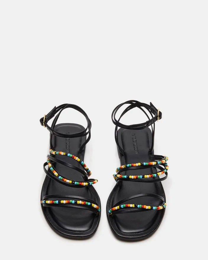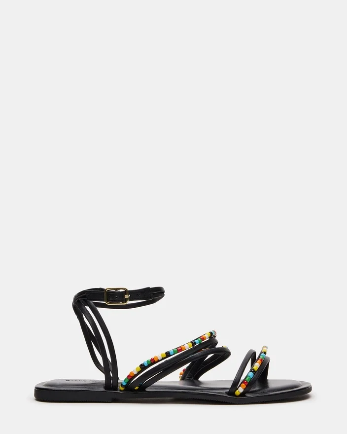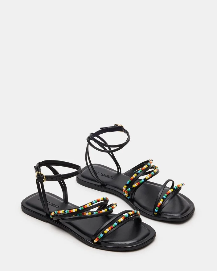 Migliora il tuo look con il sandalo con cinturini Vima Black Multi, caratterizzato da una punta squadrata chic e da un cinturino alla caviglia regolabile per una calzata sicura. Splendidamente decorato con perline multicolori, questo sandalo aggiunge un tocco raffinato di arte e colore a qualsiasi outfit, bilanciando la raffinatezza con un’eleganza giocosa.