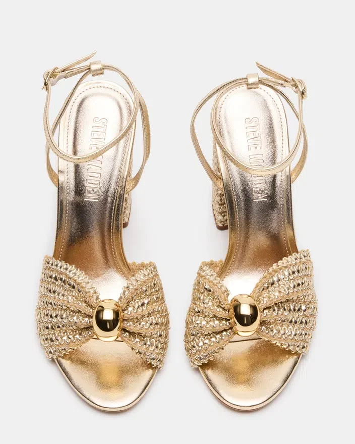 Il sandalo Cheyla Gold presenta un elegante tacco in rafia abbinato a un robusto tacco a blocco per un comfort che dura tutto il giorno. Completo di un cinturino alla caviglia che garantisce una tenuta sicura, questo sandalo offre sia stile che funzionalità. Arricchisci il tuo guardaroba estivo con questa scarpa versatile e chic.