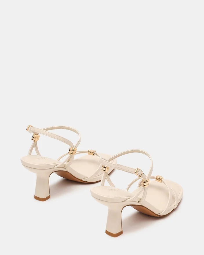 Il modello Posy Bone valorizza qualsiasi guardaroba con la sua silhouette sofisticata. I delicati dettagli dorati aggiungono un tocco di lusso al tacco elegante, mentre il design con cinturini offre un sostegno sicuro e un effetto visivo accattivante. La punta squadrata offre un profilo moderno e lusinghiero che si adatta perfettamente sia al giorno che alla sera.