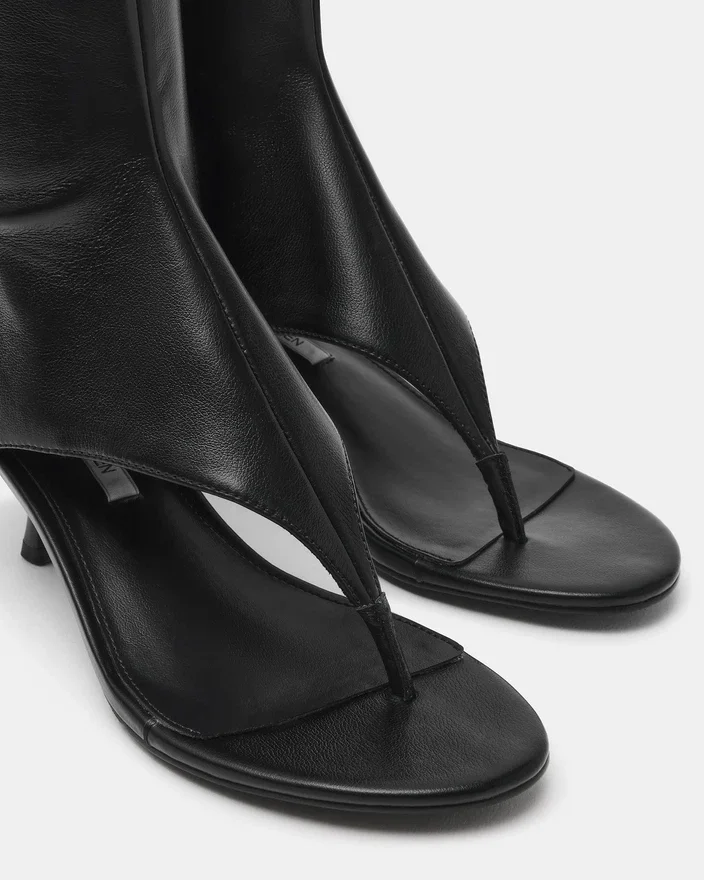 Il modello Relentless Black unisce lo stile contemporaneo delle infradito alla struttura degli stivali, creando un tacco versatile che si adatta perfettamente sia al giorno che alla sera. Il design open-toe offre comfort e traspirabilità, mentre la struttura degli stivali garantisce sostegno alla caviglia e una silhouette raffinata.