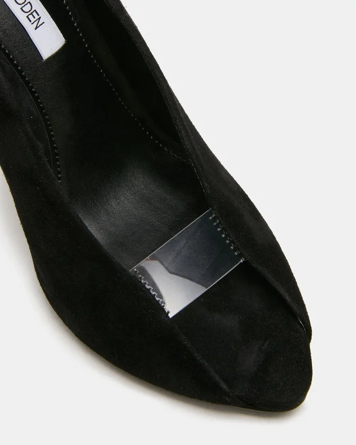 La Santino in pelle scamosciata nera unisce un’eleganza senza tempo a un tocco moderno. Questo suggestivo tacco a spillo presenta un design peep toe che aggiunge un tocco di fascino, mentre il caratteristico dettaglio del cinturino trasparente esalta il look con un tocco contemporaneo. Perfetta per eventi serali o uscite notturne, questa scarpa infonde sicurezza e stile ad ogni passo.