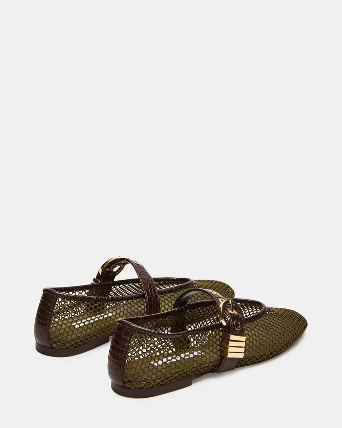 La Lucia Olive Mesh è una raffinata ballerina Mary Jane caratterizzata da un materiale in rete traspirante che garantisce comfort e ventilazione. Le sue delicate decorazioni aggiungono un tocco sofisticato, perfetto per valorizzare sia gli outfit Casual che quelli formali. Progettata con un sapiente equilibrio tra stile e praticità, questa ballerina offre una calzata sicura e una silhouette aggraziata per un’eleganza quotidiana.