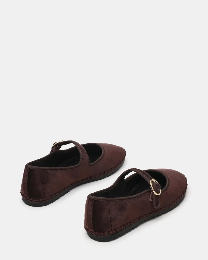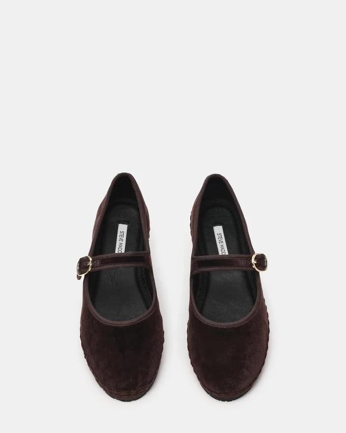 La Velma in velluto marrone presenta l’intramontabile silhouette Mary Jane, impreziosita da una chiusura con fibbia sicura. Questa scarpa piatta offre un comfort raffinato per essere indossata tutto il giorno, con punta arrotondata e un classico design con cinturino che si abbina facilmente a qualsiasi guardaroba. Il dettaglio della fibbia aggiunge un tocco di raffinatezza garantendo al contempo una calzata personalizzabile. Perfetta per chi cerca una scarpa versatile ed elegante.