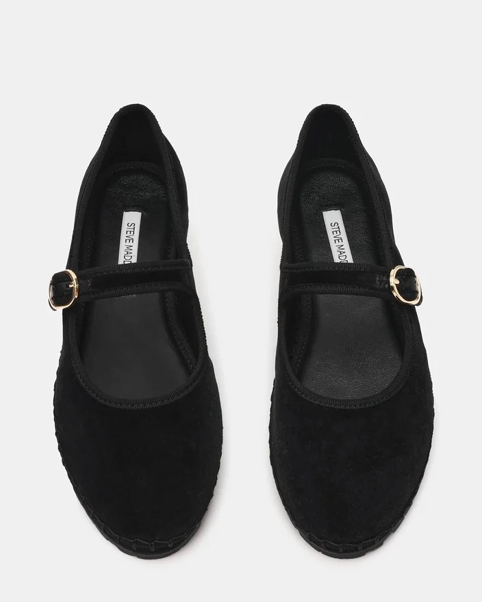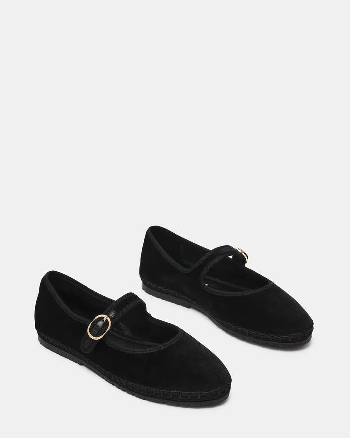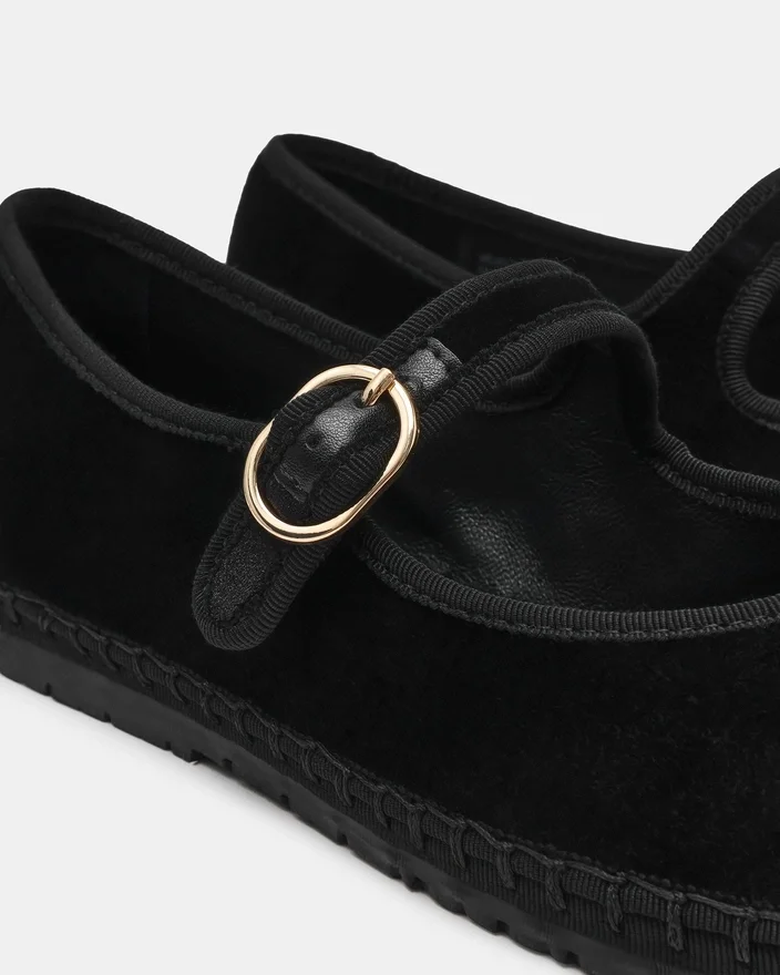 La Velma Black Velvet presenta l’intramontabile silhouette Mary Jane impreziosita da una chiusura con fibbia sicura. Questa scarpa piatta offre un comfort raffinato per essere indossata tutto il giorno, con punta arrotondata e classico design con cinturino che si abbina facilmente a qualsiasi guardaroba. Il dettaglio della fibbia aggiunge un tocco di raffinatezza garantendo al contempo una calzata personalizzabile. Perfetta per chi cerca una scarpa versatile ed elegante.