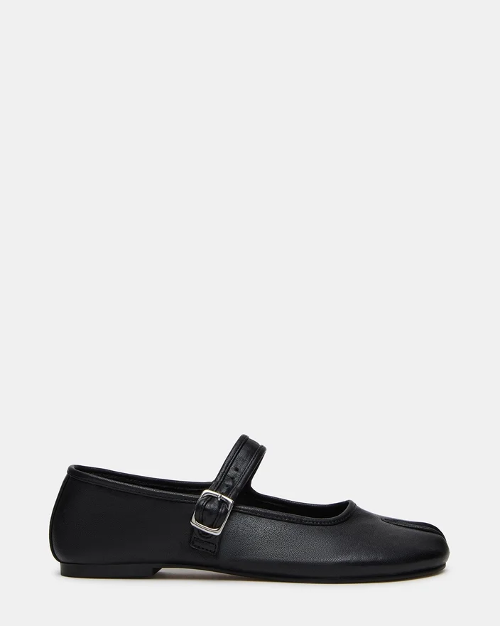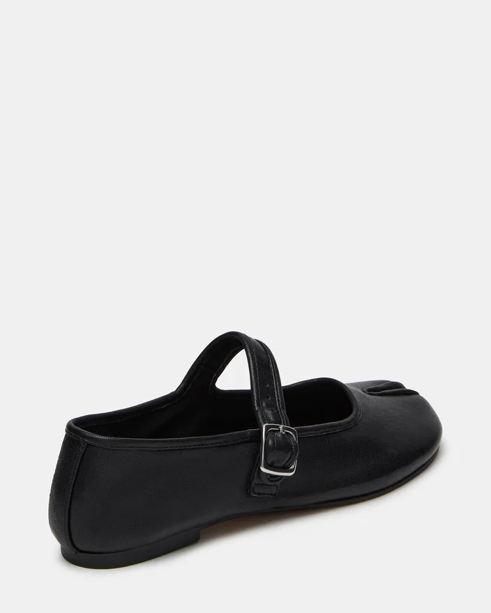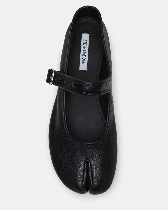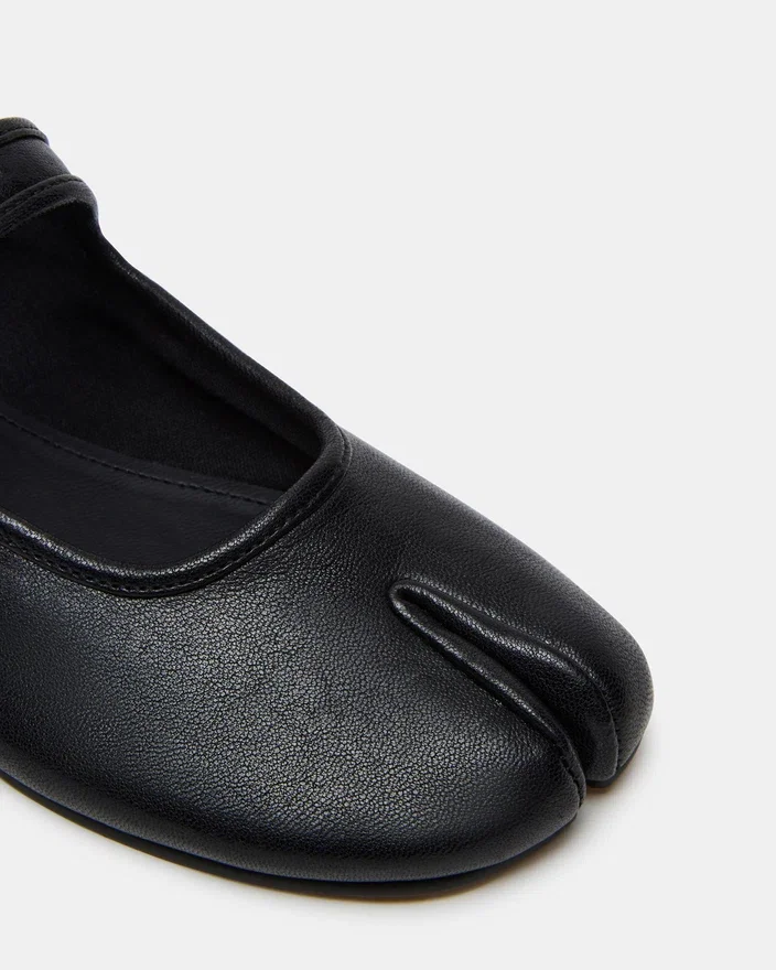 La Calara in pelle nera combina un design contemporaneo con un’eleganza senza tempo. Queste Scarpe Tabi con punta divisa presentano una silhouette da ballerina aggraziata che si adatta perfettamente sia a contesti Casual che raffinati. Il cinturino Mary Jane garantisce una calzata sicura e regolabile, mentre la suola piatta offre comfort per tutto il giorno senza rinunciare allo stile. Perfetta per chi cerca una scarpa distintiva che bilancia l’innovazione con il fascino classico.