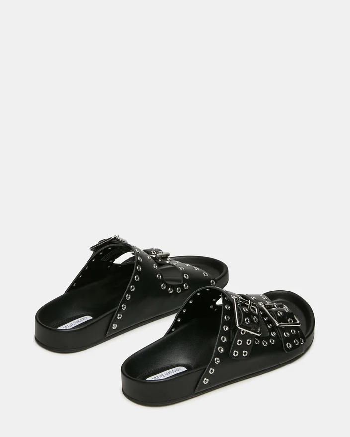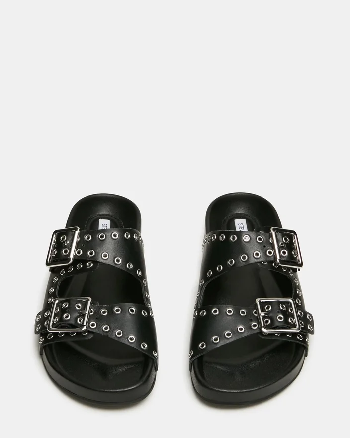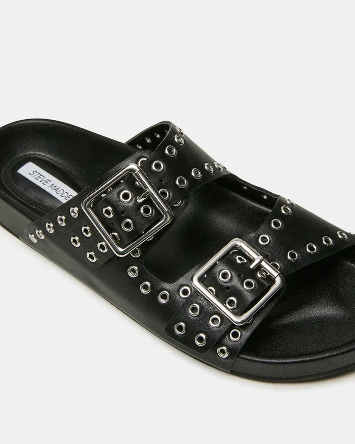 Il sandalo Abott in pelle nera combina un’eleganza sobria con un comfort pratico. Intricati dettagli con occhielli adornano la tomaia, mentre le doppie fibbie assicurano una calzata personalizzabile e sicura. Il plantare di sostegno è progettato per un uso prolungato, rendendo questo modello una scelta sofisticata per chi esige sia stile che funzionalità nelle proprie calzature quotidiane.