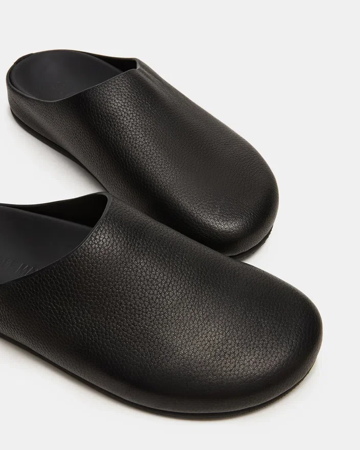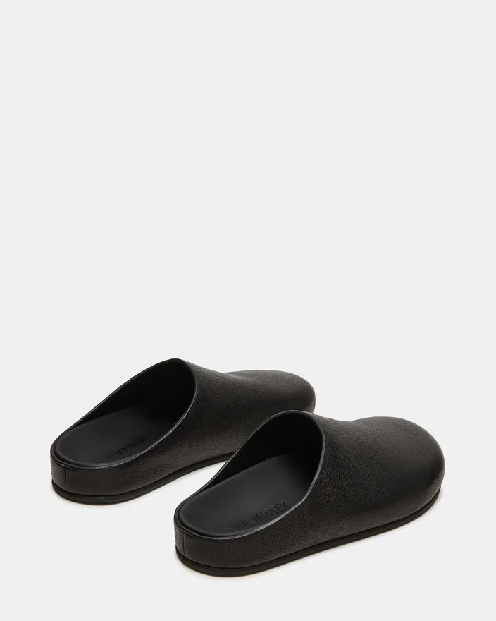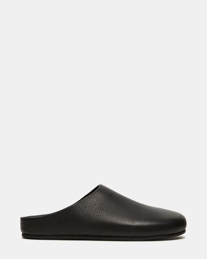 Il sandalo Fern in pelle nera presenta un design slip-on intramontabile con punta arrotondata e suola piatta, progettato per garantire comfort e praticità per tutto il giorno. La sua estetica minimalista si abbina perfettamente a qualsiasi guardaroba, dai weekend rilassati alle occasioni più raffinate. Un capo essenziale e versatile che bilancia l’eleganza sobria con la praticità.