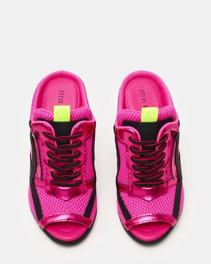 Sfoggia uno stile audace con le sneakers col tacco Chevelle Pink Multi. Questo accattivante modello stringato combina il materiale sportivo in rete con un’inaspettata silhouette peep-toe, creando una fresca fusione tra casual e chic. Perfetta per chi vuole distinguersi rimanendo comoda, questa scarpa versatile passa senza sforzo dal giorno alla sera.