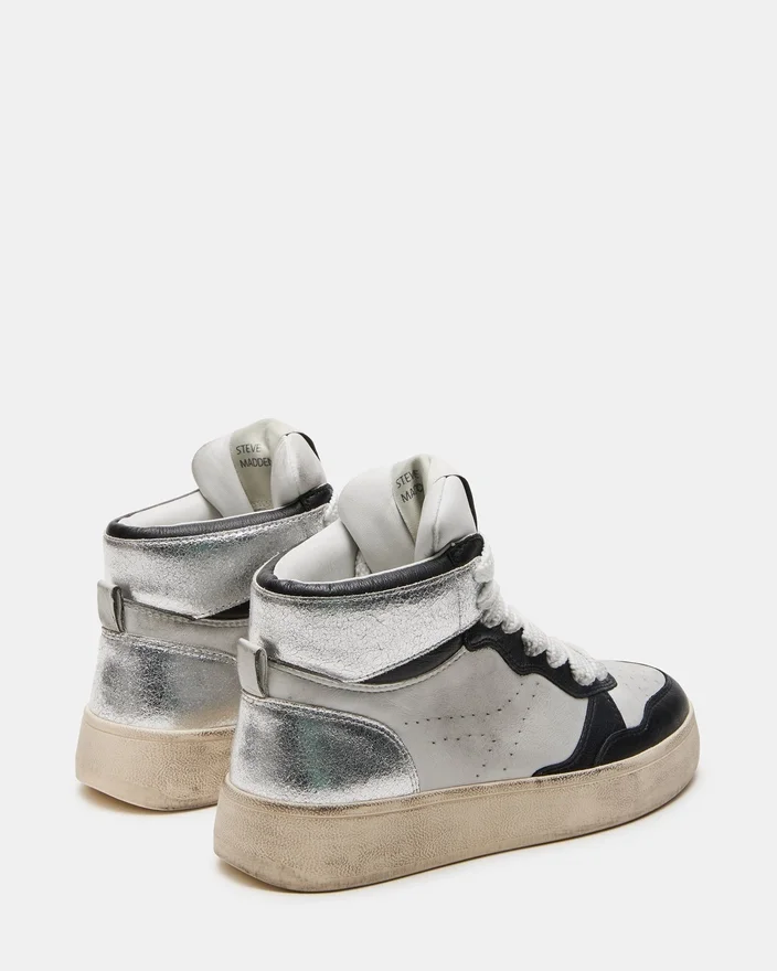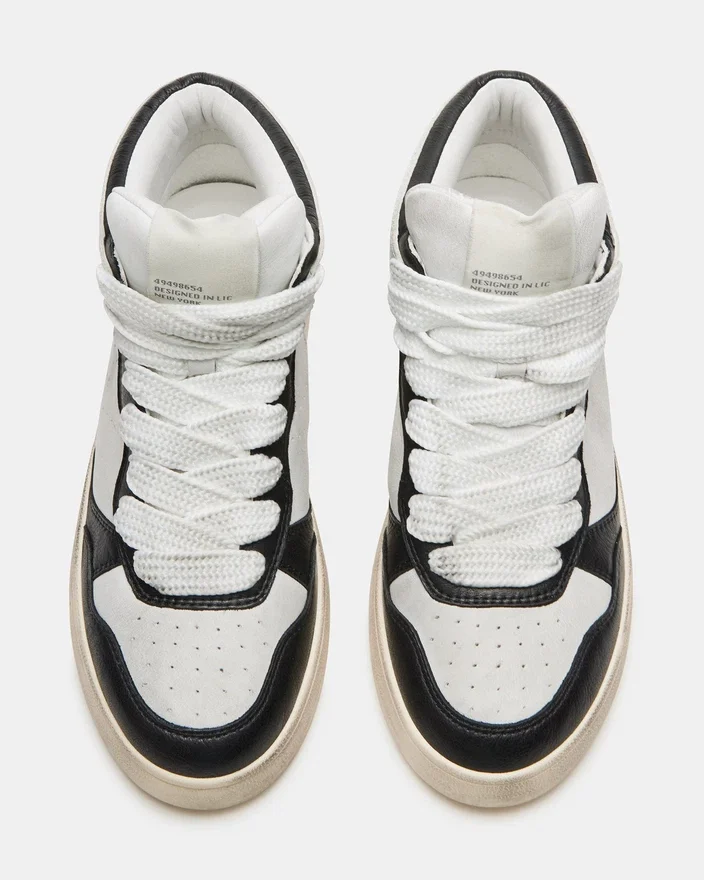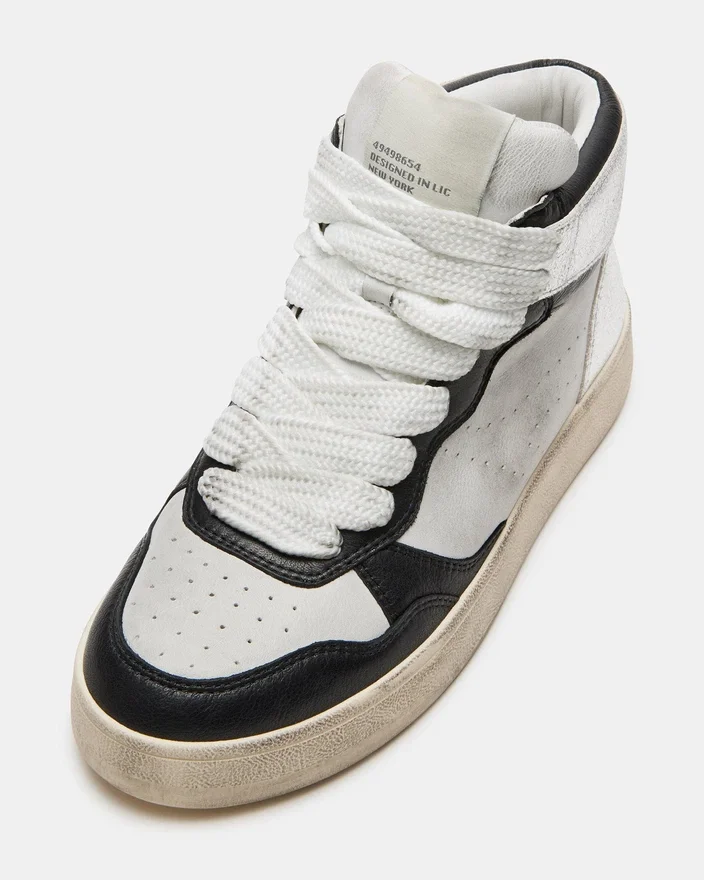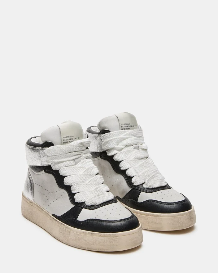 La sneaker alta Endless presenta un design strutturato a plateau con effetto invecchiato su tutta la superficie e lacci extra larghi.