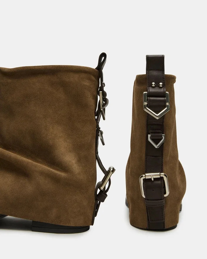 Lo stivaletto Benji presenta un sofisticato design con risvolto a risvolto combinato con un’elegante silhouette ispirata allo stile motociclistico. Il suo esclusivo dettaglio con fibbia sul retro aggiunge un tocco distintivo, fondendo stile e funzionalità discreta. Realizzato per garantire sia comfort che un look di grande impatto, questo stivaletto valorizza qualsiasi outfit grazie alla maestria artigianale e al tocco contemporaneo.