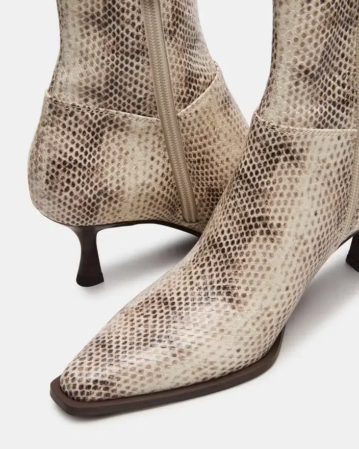 Completa il tuo outfit con gli stivaletti Stasia. Questi stivaletti versatili presentano un tacco basso alla moda e punta affusolata, garantendo stile e comfort. Queste scarpe sono l’aggiunta perfetta al tuo guardaroba per ogni occasione. Migliora qualsiasi look con questi stivaletti imperdibili.