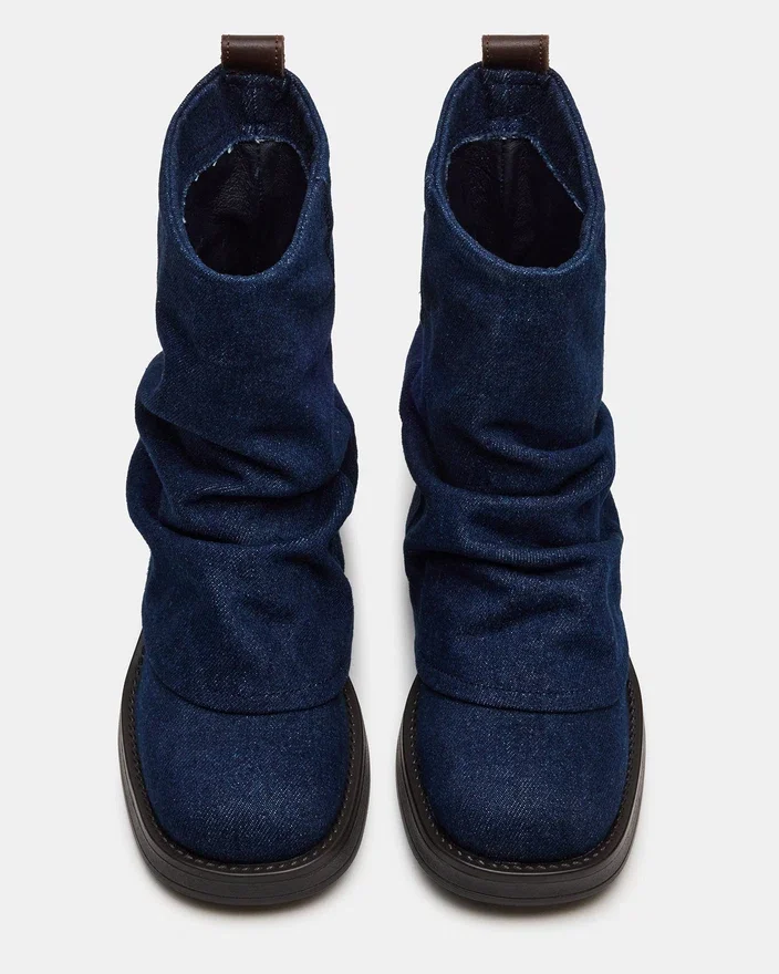 Gli stivaletti in denim Benji presentano un sofisticato design con risvolto a risvolto, abbinato a una silhouette elegante di ispirazione motociclistica. L’esclusivo dettaglio della fibbia sul retro aggiunge un tocco distintivo, fondendo stile e funzionalità discreta. Realizzati per garantire comfort e un look di grande impatto, questi stivaletti valorizzano qualsiasi outfit grazie alla maestria artigianale e al tocco contemporaneo.