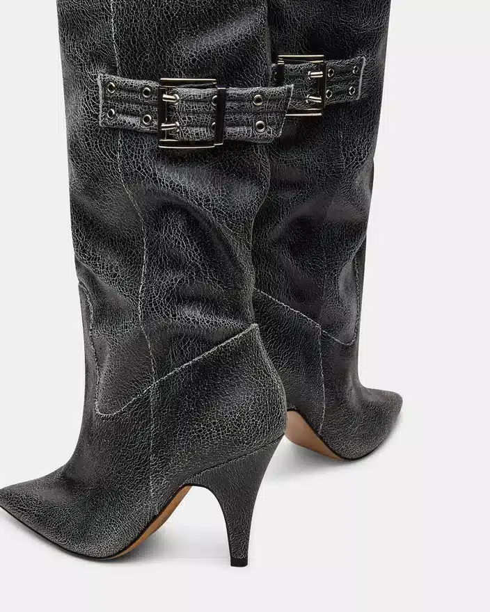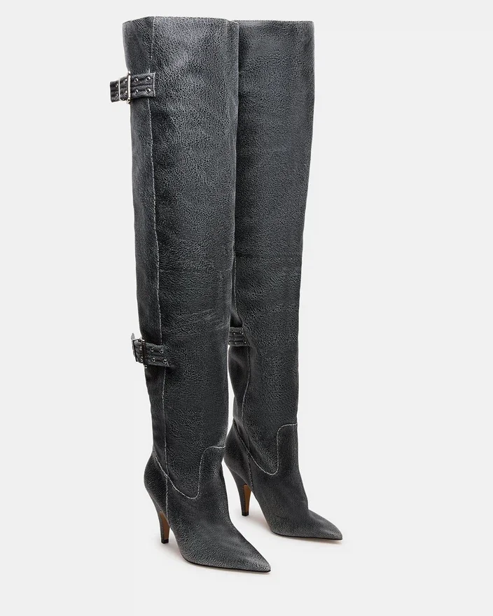 Realizzati con maestria, gli stivali Baddie sono audaci e pratici. Caratterizzati da punta affusolata e dettagli con fibbia, questi stivali sopra il ginocchio con scarpe col tacco offrono un tocco unico a qualsiasi outfit. Migliora il tuo stile con questi stivali di tendenza.